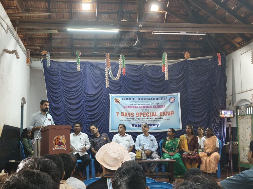 On 23rd Dec camp was inaugurated by Sri.Satheesh Chandra Bhandary Kolar member college governing council Nalanda College Perla & presided by sri Shamana Kandige member of governing council Nalanda college Perla with the presence of Sri Shankra Kandige principal Nalanda college Perla ,Sri Varshith K NSS programme officer, Sri Shridhar Manager AUPS Yethadka, Sri Rajarama kunjar head master AUP School Yethadka, PTA president MPTA president AUP Yethadka, ADS president , secretary CDS member, Kutumbashree member of Yethadka Grama Panchayath, Staff members of Nalanda college & volunteers.